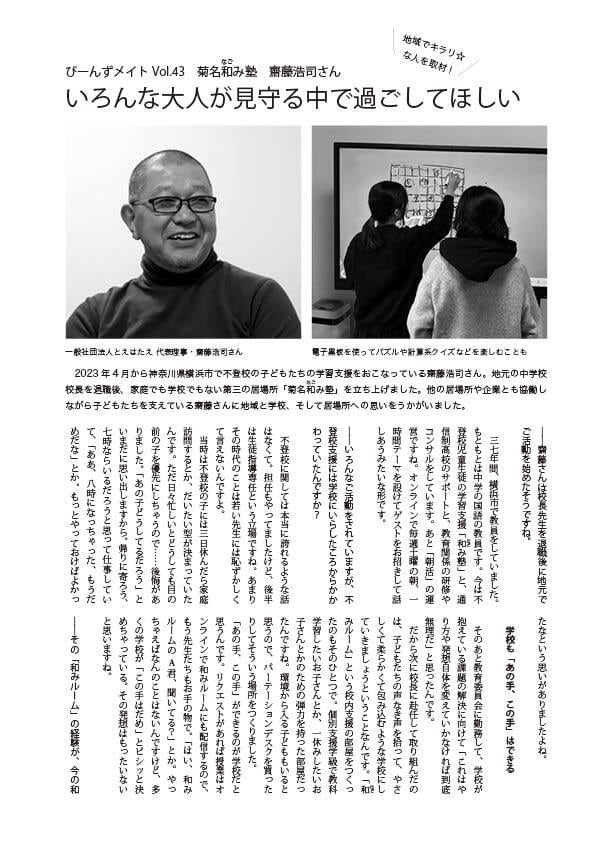 ●びーんずメイトVol.43 菊名和み塾 齋藤浩司